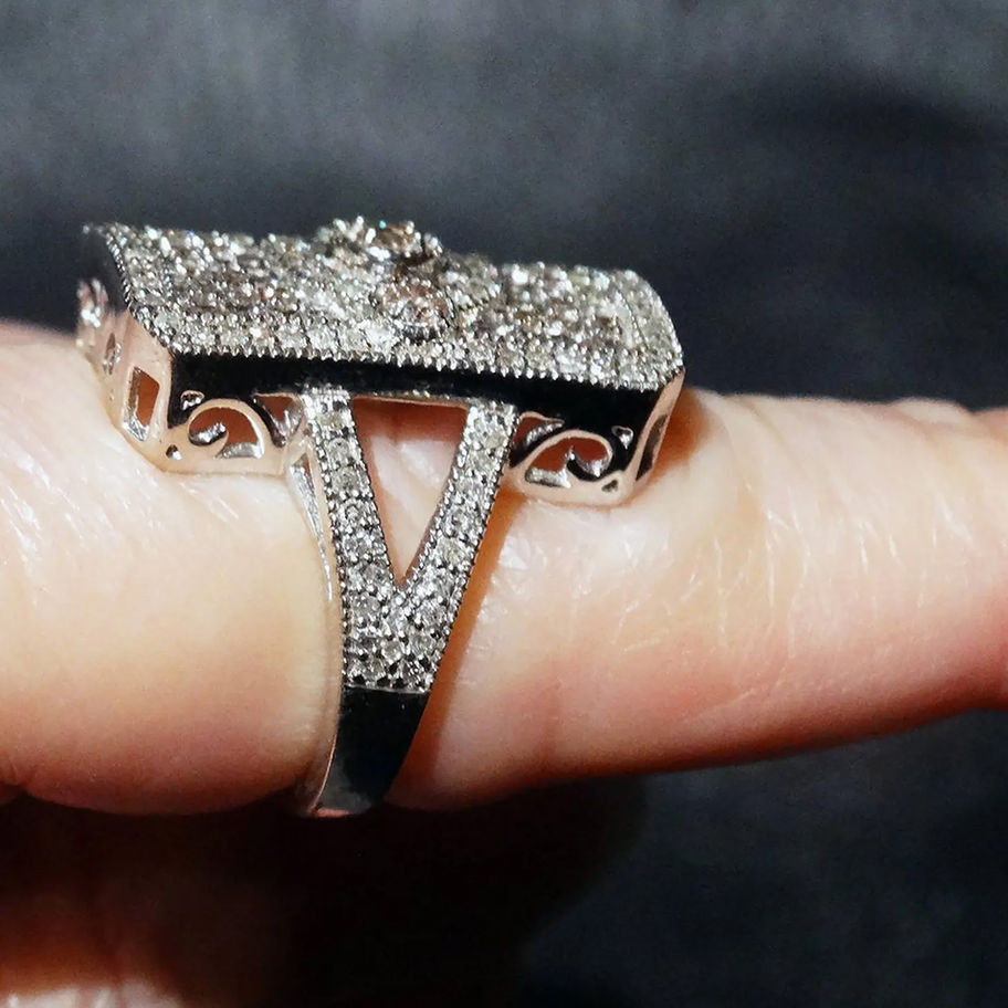 Art Deco Ring, Diamond Encrusted, Vintage